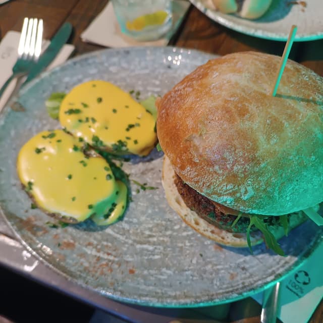 Monica1,327 reviewsHamburguesa doble con queso fundido, tomate y aros de cebolla. Está riquísima y es grande. Viene acompañada de una patata con una salsa también muy rica.Big Queen Burger