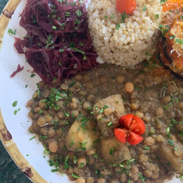 Pensa num prato bom! Esse cuscuz estava maravilhoso. A abobrinha recheada de arroz com lentilha também estava muito boa. Assim é fácil ser vegana 😉 O restaurante é vegetariano mas sempre tem opção para veganos #ranchodosgnomos #casadoconsolador