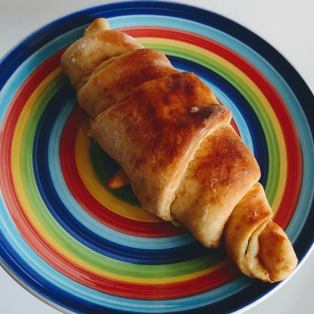 Riquísimo cruasán dulce, que venía con almíbar en la parte superior. Muy generoso el tamaño. Súper mullido y delicioso. Lo recomiendo.