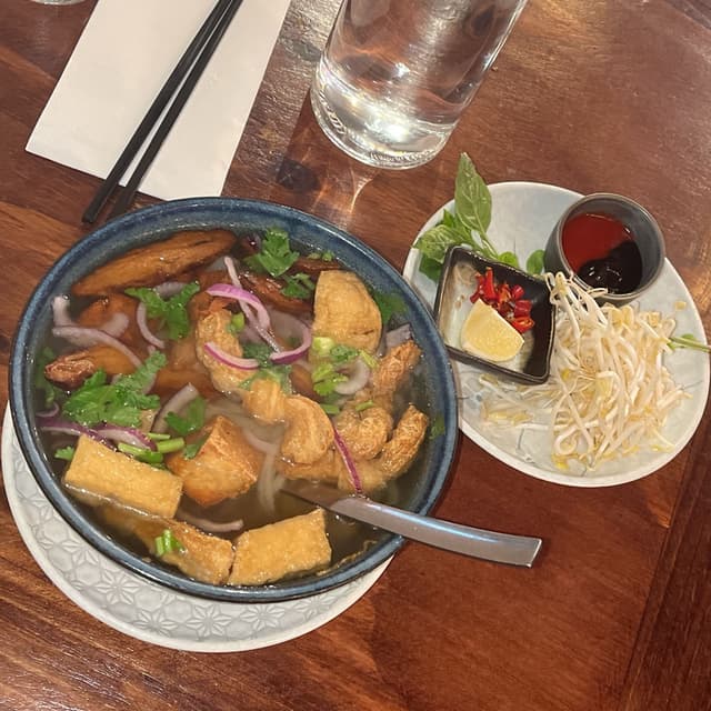 Vegan1,775 reviewsThe service was so fast and this was quite a big bowl. You can choose between "beef" or "chicken". I chose chicken. I would have preferred one of those special soup spoons you get at some Asian restaurants. It takes forever trying to drink the liquid at the bottom with a normal spoon. Unless you drink from the bowl.. 😬 #vietnamese #vietnamesephoAu Lac Pho Soup