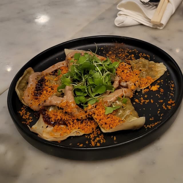Alliza598 reviewsFell apart as soon as I picked it up (just mine though, probably my fault). Mushroom was crumbly. Dumpling wrapper was good. I enjoyed the micro arugula. Overall, not bad.Shiitake Truffle Dumplings