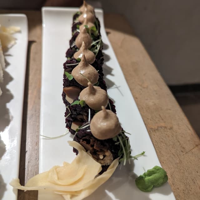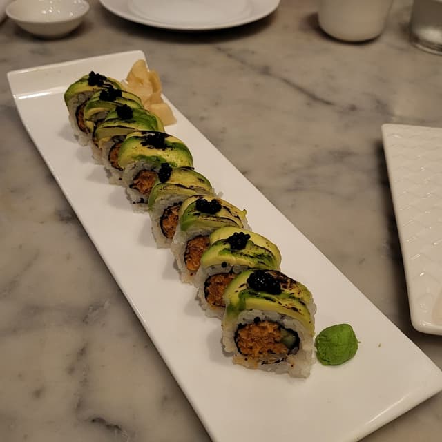 samanthab3327 reviewsThis place was really good! The vegan fish had a good texture and I enjoyed the vegan cream cheese. I wish the portions were larger for the price because the rolls were kind of small! The green tea ice cream was good, not too sweet how I like it. 🍣Charred Avocado Roll