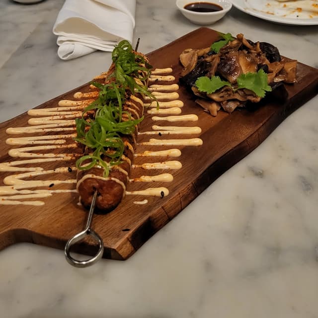 Alliza598 reviewsWe were wondering if they forgot to put the 's' in skewers but it turned out there really was just the one. Tasty pork skewer. Loved that there were so many mushrooms on the side. Each mushroom was packed full of flavour!Miso Glazed Pork Skewer
