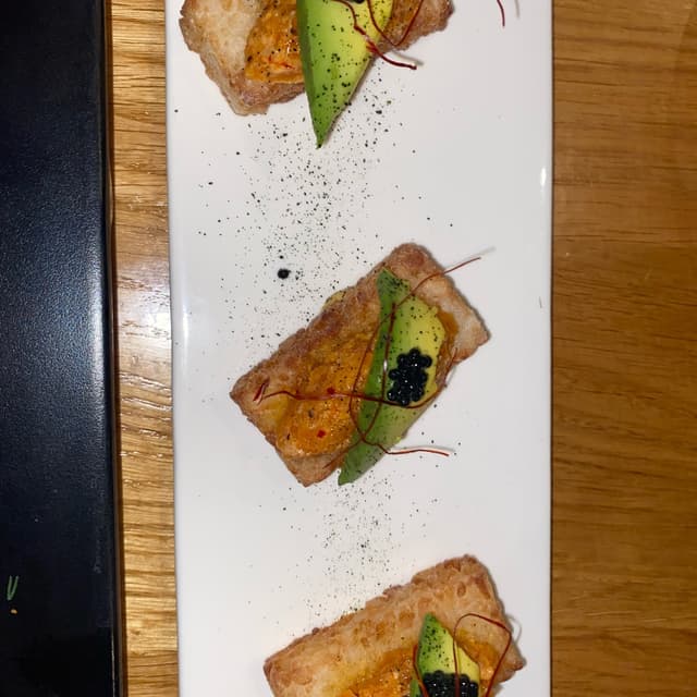 janscaz660 reviewsLovely Tuna sushi on crispy rice and also rests on a little sauce. And there is a dollop of sauce on top You need sauce baby !tuna crispy rice