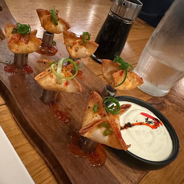 veganstamps5 reviewsDELICIOUS! Our favorite thing we tried. From the crunchiness of the rangoons to the cream it came with, 100% recommend.Crab Rangoons