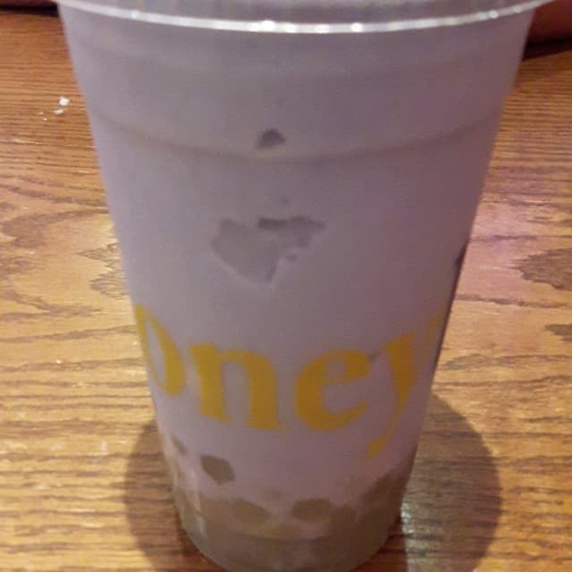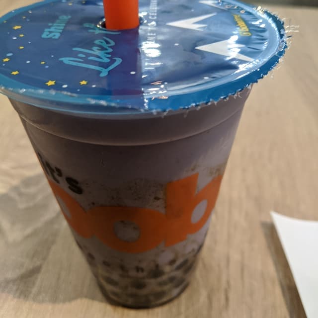 Mi bobba favorita es de taro pero esta vez la pedi de pistache con leche de almendra esta buena pero mi fav sigue siendo la de taro