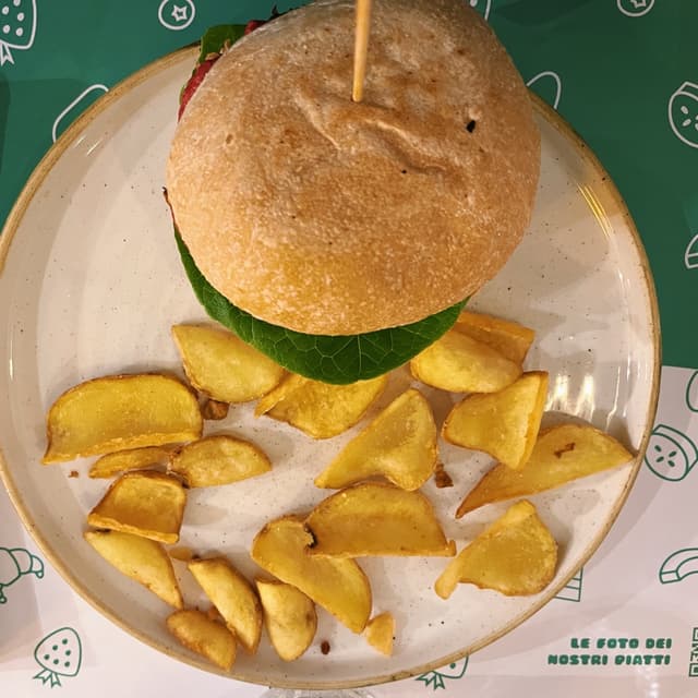 Alice459 reviewsBuonissimooo, con il beyond meat e la maionese vegana😻😻Nulla da dire, è un po’ difficile da addentare tutto in un colpo perché è bello pieno ma per il resto voto 10!!Fake Burger