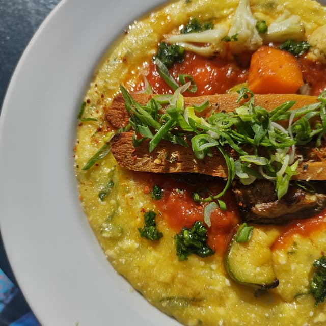 Noelia Schulz1,441 reviewsLa recomiendo mucho. Es un plato ideal para invierno. Conviven muchos sabores al mismo tiempo, cada cucharada es diferente. Vegetales grillados, salsa picante, verdeo, salchicha vegetal ahumada. Todo delicioso y en su punto justo. La polenta es bien cremosa y sola tiene un sabor riquísimo de por sí. Una porción abundante y reconfortante.Polenta