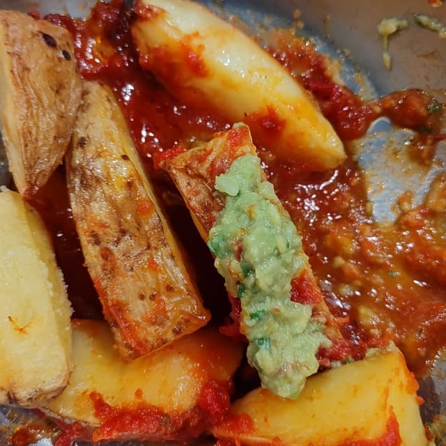 Muel500 reviewsSon papas con salsa y palta El plato original sale con chedar pero se puede "veganizar"Papas Bravas