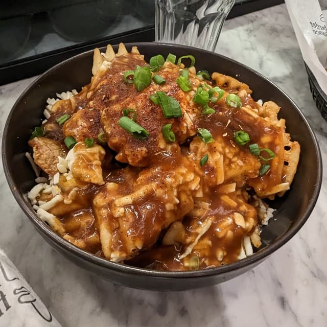 It was good, but like not excellent. I kinda feel like the 2 sauces didn’t go well together. Waffle fries were way too big, I don’t know, I am not wowed. I don’t think I would take it again. The chicken was good tho. #poutine