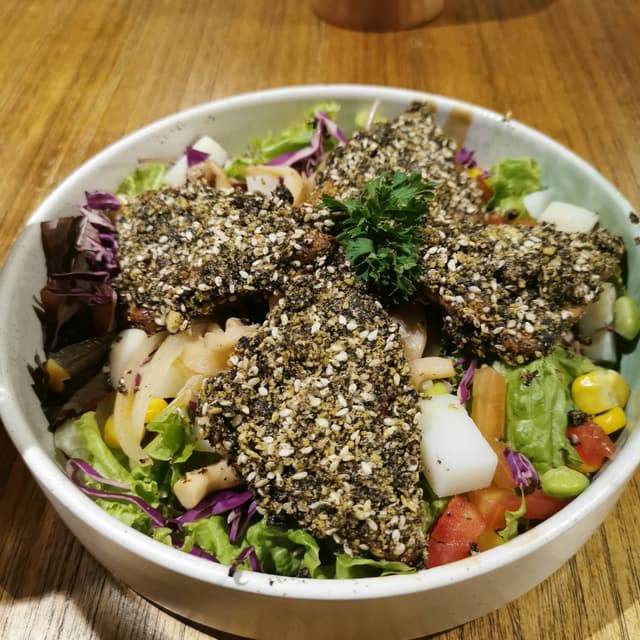 Benanti Andrea499 reviewsInsalata con carne vegetale speziata con salsa al pepe e mix di verdure!! OttimaBlackpepper Salad Bowl