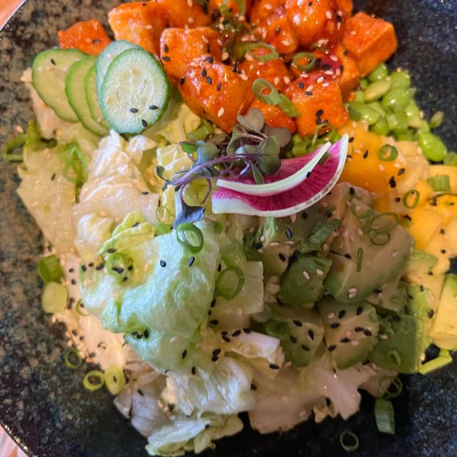 My partner ordered this- the server said it was better than the other dish we were trying to decide between. Nice presentation on this dish as well and the crispy tofu, mango and edamame were the stars of the dish 👏🏼