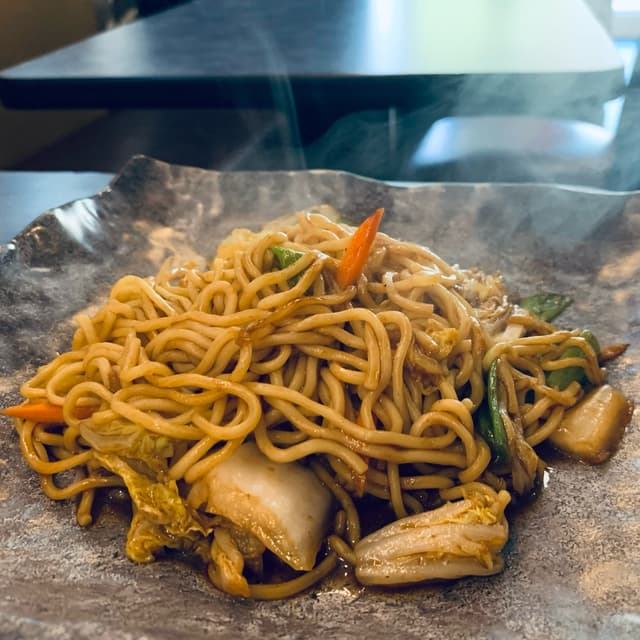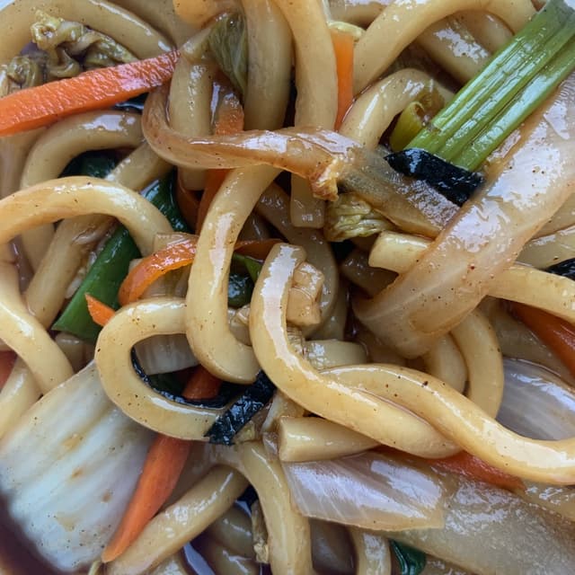 Love this dish! Japanese thin noodles stir fried with mixed vegetables in sweet and savory sauce. Delicious! 🍜🥕🧅🫛 #uplandspeak #bloomingtonindiana #noodles