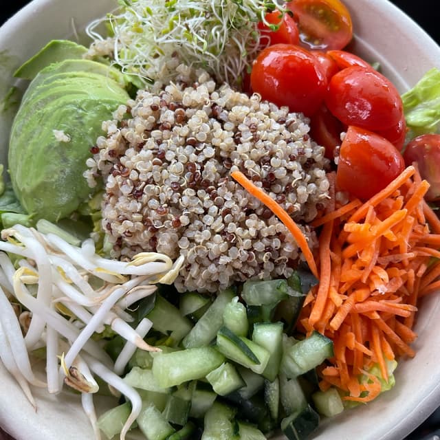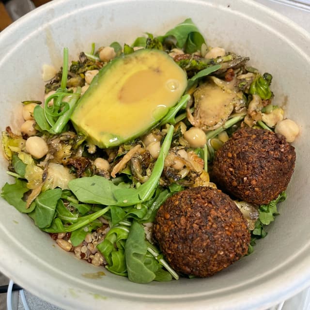 This bowl consists of healthy grain, avocado, Pico de Gallo, black beans, plantains and vegan protein. I would have traded some grains for more black beans. #veganprotein