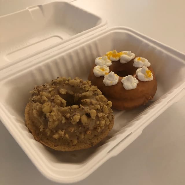 veramente buonissimo. mi emoziona il fatto che in questo café abbiano quasi esclusivamente donuts vegani. Questo è sofficissimo e altissimo (nel senso ben lievitato), salato al punto giusto se non siete amanti delle cose troppo dolci. Il caffè è solo ok, non ci si può aspettare tanto fuori dall’italia. Questo è uno dei gusti che mi piace meno di cartem, ma solo perché sono amante del cioccolato e del dolce e perché questi donuts sono uno più squisito dell’altro! uno è quasi poco, ma prenderne due è troppo (ho avuto un leggero mal di pancia dopo due). uno e mezzo è la giusta quantità, se avete un amico con voi approfittatene!