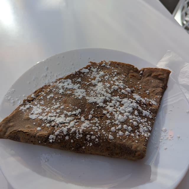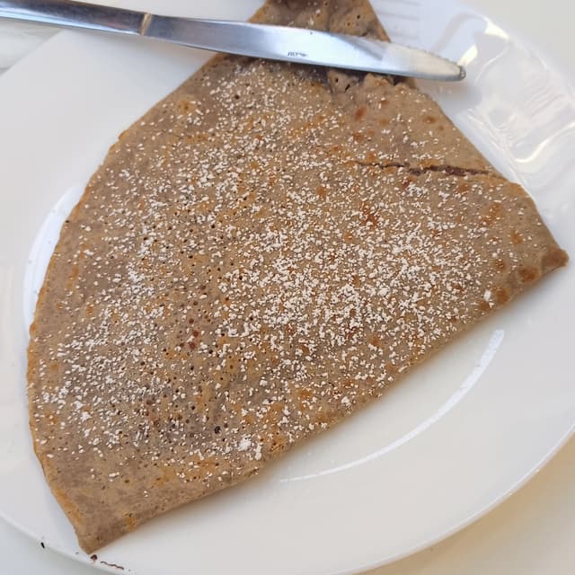 Crepes con grano saraceno con Nutella Ferrero vegetale. Ci voleva più Nutella perché così mangi un impasto asciutto, di grano saraceno quindi ha un suo sapore, un po' insipido...senza neanche Nutella ninne un granché