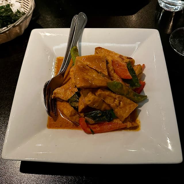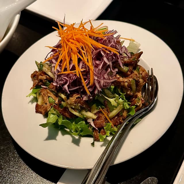 It has a bit of a kick to it, moreso than the duck salad IMO. They ask if you want to add rice but I was too full from all the shared small plates. If you were just getting this as your full meal, I’d recommend pairing it with rice and you might get two servings out of it.