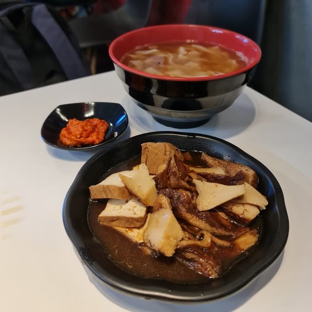 Affordably priced at $5 for a brimming, vegetable #brothy bowl of hand torn #wheat doughy chunks, #greens and #tofu. Nothing fanciful though healthy enough for #everydayeats 😋 #comfortfood