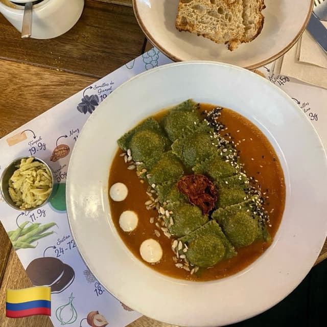 These raviolis!! Damn these raviolis!!!! The sauce is wonderful (I even think the sauce was better than the raviolis hahaha) so the combination is ⭐️ #Perfection ⭐️ *btw I ordered the vegan mozzarella (as an extra) and tbh I don’t think it’s needed. #VeganPasta #VeganRavioli #VeganColombia #ColombianVeganSpots #ColombianVeganStops #RestoWithTonsOfReviews #TonsOfReviews #DeliciousPasta #DeliciousRaviolis