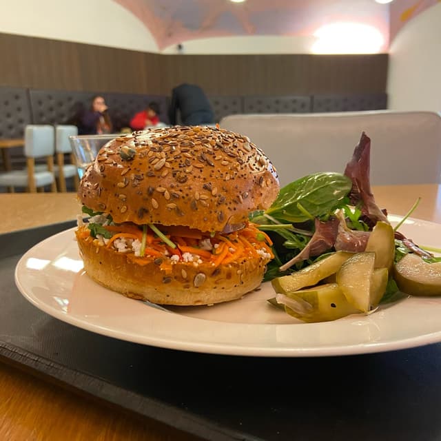 This wrap was the only vegan savoury choice apart from salad in the Djanogly cafe. I visit the Tate galleries regularly and wish they had more to offer in refreshments. The wrap was average. The wrap looked pretty and appetising as did the packed filling, but it was all pretty tasteless too. I think all their food suffers from being prepared and chilled the day before. The staff member asked if I wanted salad - yes please - then proceeded to award me a miniscule dump of a few leaves and a squirt of dressing. You pay a lot for this, I think - £10.95 🙁 The cafe area is pleasant and spacious with lots of art on the walls and there’s an outside seating area which was nice in the sunshine. The Tate’s saving grace is the art of course. We had gone to see the Edward Burra exhibition, full of vibrant, imaginative depictions of 1920s/1930s life. I’ve added a water colour painting he made inspired by Marseille. #veganinlondon #artgallerycafe #veganwrap
