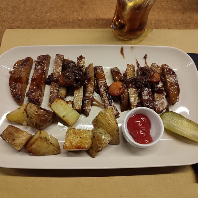 Ottima alternativa per un secondo piatto vegano, prevale il sapore della cipolla caramellata. Ottime anche le patate al forno di contorno, ne avrei gradita una quantità maggiore.