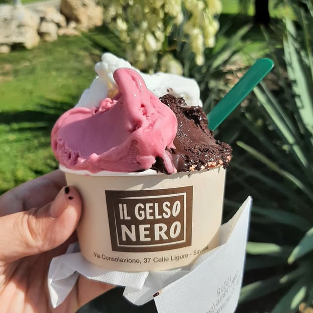 Coppetta grande , 3 gusti € 4,50, ho scelto cioccolato fondente all'acqua , melograno e limone . Molto buono, cremoso, ma devo dire, che gusto di cioccolato fondente è strepitoso, una bontà assoluta.