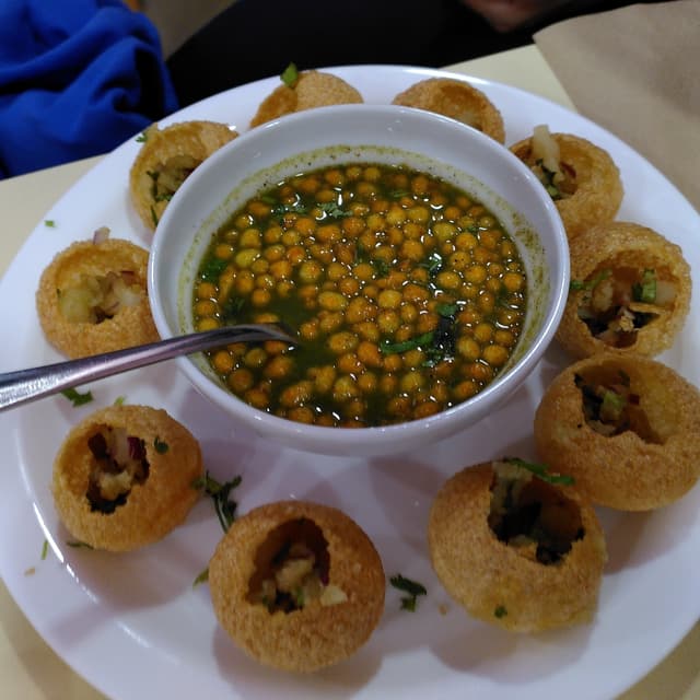 walkabout-veg3,448 reviewsBolitas de trigo fritas con verduras acompañadas por agua con menta, garbanzos y salsitas. Explosión de sabores! Personal amable!pani puri