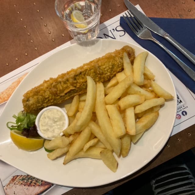 fish and chips vegan, non so come sia possibile ma sembra di gusto e consistenza pesce fritto, mi ha lasciata piacevolmente sorpresa davvero ottimo, il locale è piccolo e confortevole, consiglio assolutamente