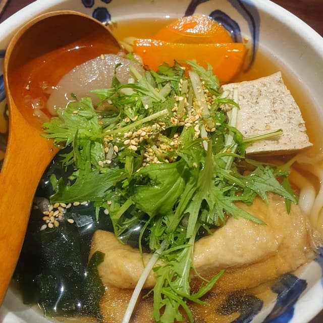 Kayla3,040 reviewsAn amazing vegan Japanese restaurant with a vegan bakery attached. This udon was fresh, delicious, healthy, and super filling.Udon in Broth