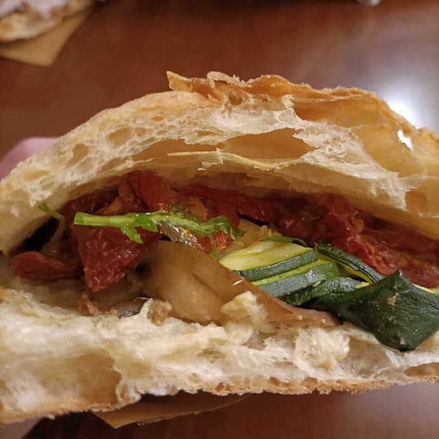 Abbiamo trovato questo posticino piccolo che sembrava meno turistico di altri, aveva una bella atmosfera con il personale giovane e simpatico. Abbiamo scelto l'unica schiacciata vegana che c'era ma immagino che volendo si possano anche veganizzare delle altre. Impasto delizioso, leggero e croccante, il ripieno poteva andare meglio, avrei voluto sentire di piu la salsa al tartufo. 💸 7€