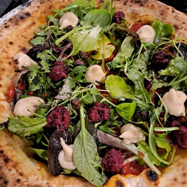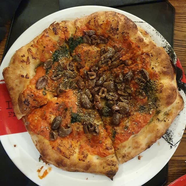 Marinara atomica... ATOMICA per davvero! Appena dai un morso a questa pizza, ti arriva un'esplosione di sapori in bocca, ti arrivano queste diverse "sfumature" di pomodoro, incredibile veramente! Infatti sopra c'è una maionese di pomodoro (nel menù è specificato che è fatta senza uova e con latte di soia), bucce di pomodoro croccanti, pomodoro del piennolo secco, origano di montagna e pomodoro San Marzano cotto 12 ore, insomma, sanno bene come lavorare i pomodori. Ho preferito decisamente questa alla pizza dalle tre cotture. Non parliamo poi dell'impasto leggerissimo, estremamente piacevole, ma che ne parliamo a fare!!