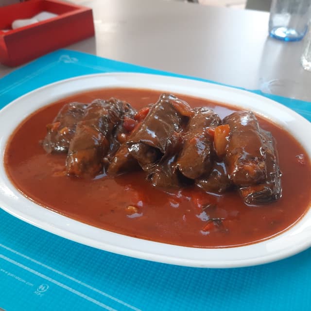 Con especias y en salsa de tomate. Tienen un sabor muy intenso, casi te olvidas de que estás comiendo #arroz, ya que las especias son las protagonistas. La hoja de parra es blandita, y original para la gastronomía a la que estamos acostumbrados. Recomiendo mucho este local, que tiene más opciones veganas.