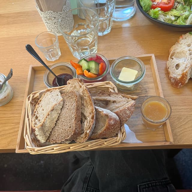 I LOVE this restaurant! The majority of the food is vegan and the people are super nice, so you can always ask if they could make something vegan. The menu often give you the opportunity to choose if you want your dish vegan or nonvegan (here I could choose between the lemon-hummus you can see in the pic, or an egg)