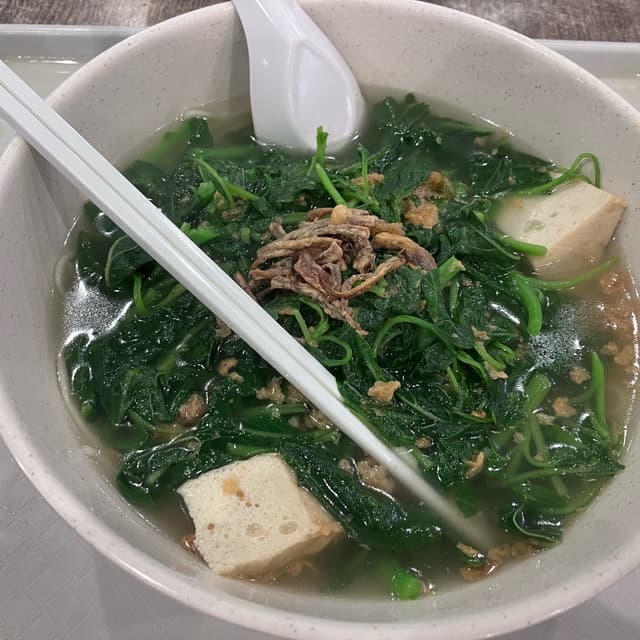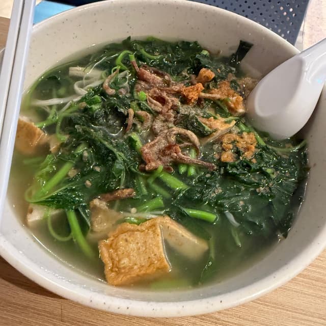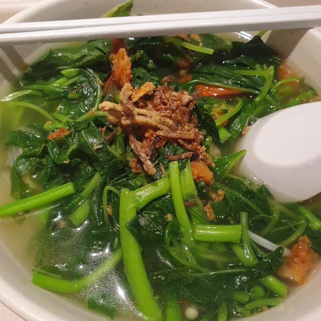 mushroomtarian2,046 reviewsThin and chewy noodles. Generous amount of dark green leafy veg. Yums.Mee Hoon Kueh