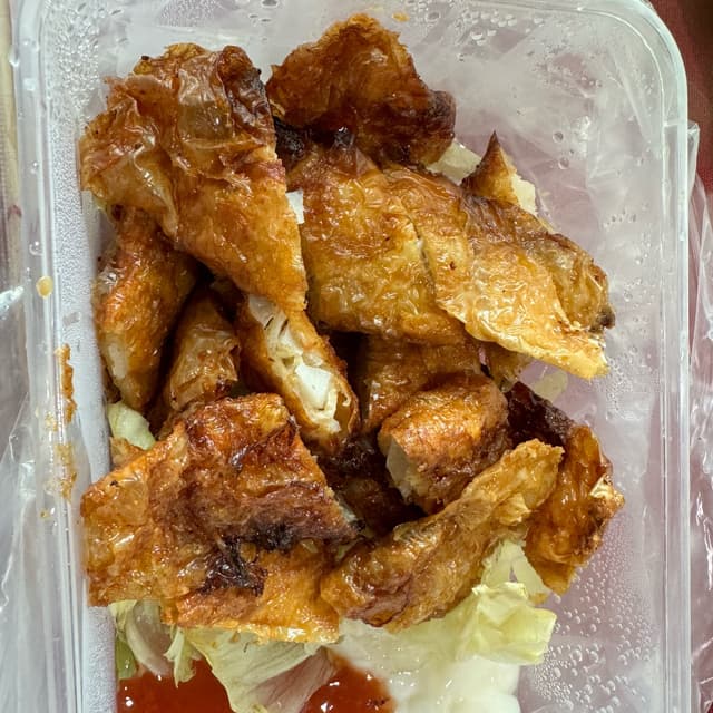 The Green Bovine Universe919 reviewsThe inner fillings are bits of mock prawns, carrots and mixture of vegetables. A little oily to my liking, and not something I would eat everyday although it’s crispy and quite tasty. Serve with sweet chili and vegan mayo that elevates the taste. #fingerfood #frittersPrawn Rolls(mock)