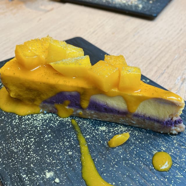 vegala119 reviewsDelicioso cheesecake vegano de base de anacardos, con arándanos y mangoCheesecake de nabius i mango