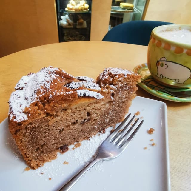 La merenda perfetta: torta + cappuccino. 😋