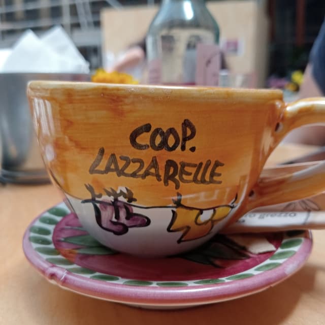 Il cappuccino di per sé non è il più buono mai bevuto, ma acquista mille punti servito in questa tazza stupenda, proveniente da lavoro delle detenute ed ex detenute del carcere femminile di Pozzuoli. Questa realtà infatti è nata per favorire l'emancipazione delle donne e quindi fare una sosta dalle Lazzarelle è un'occasione per sostenere il loro progetto.