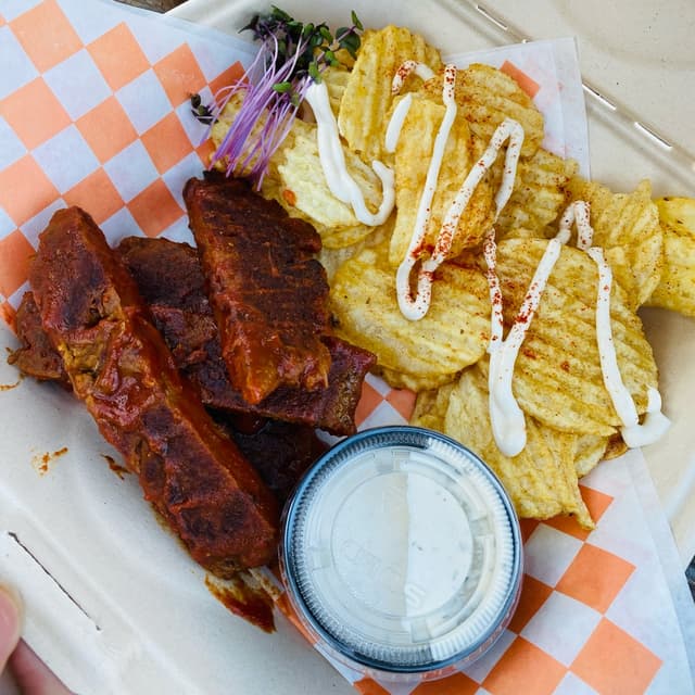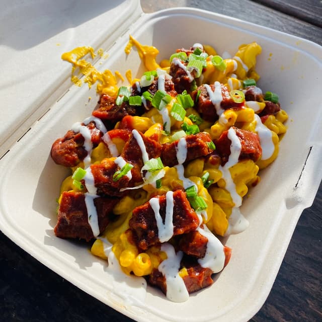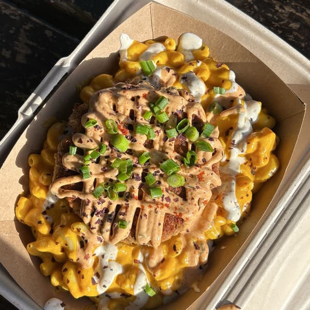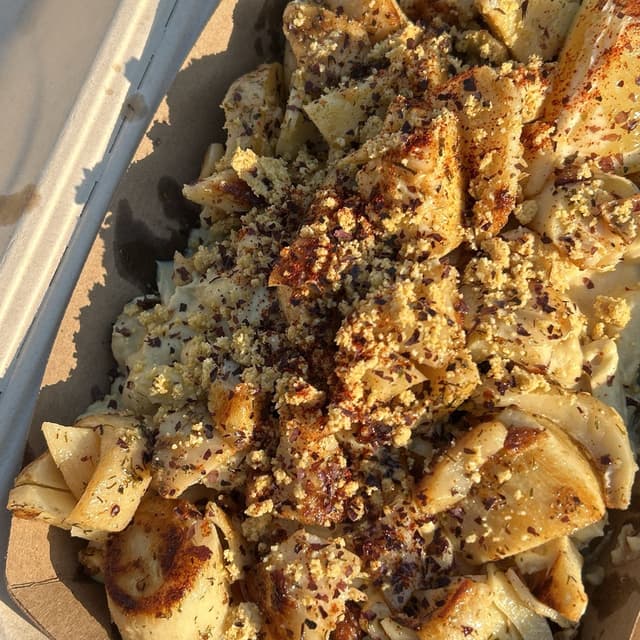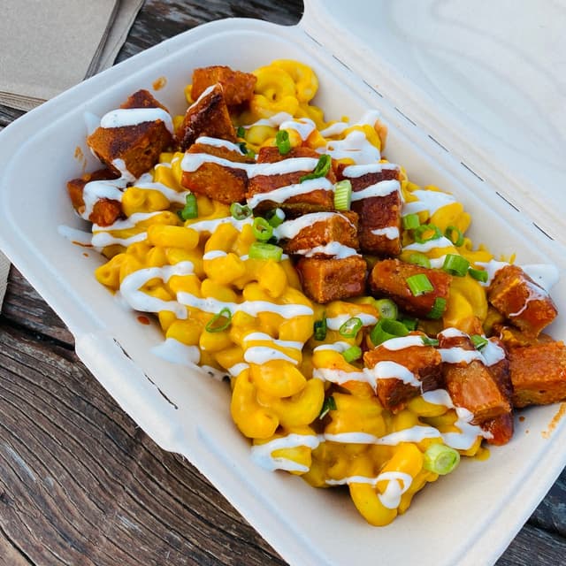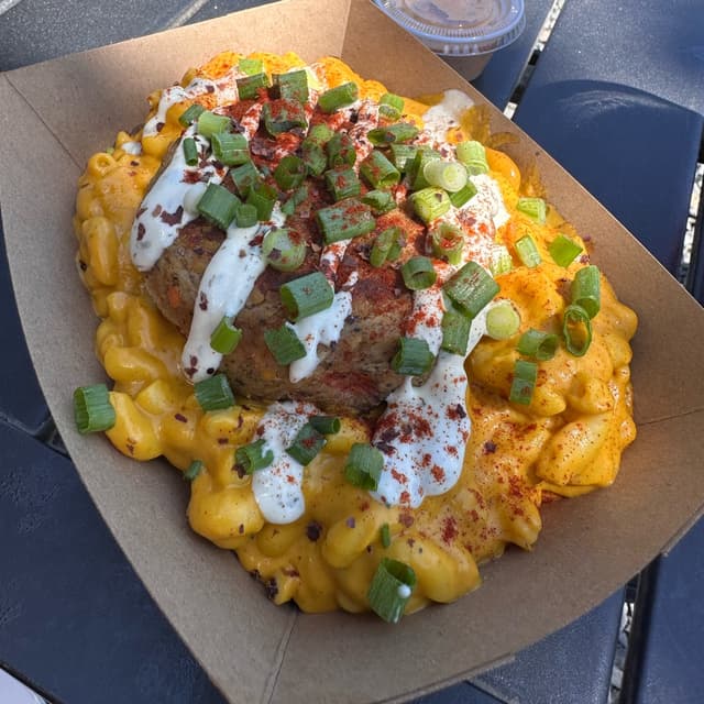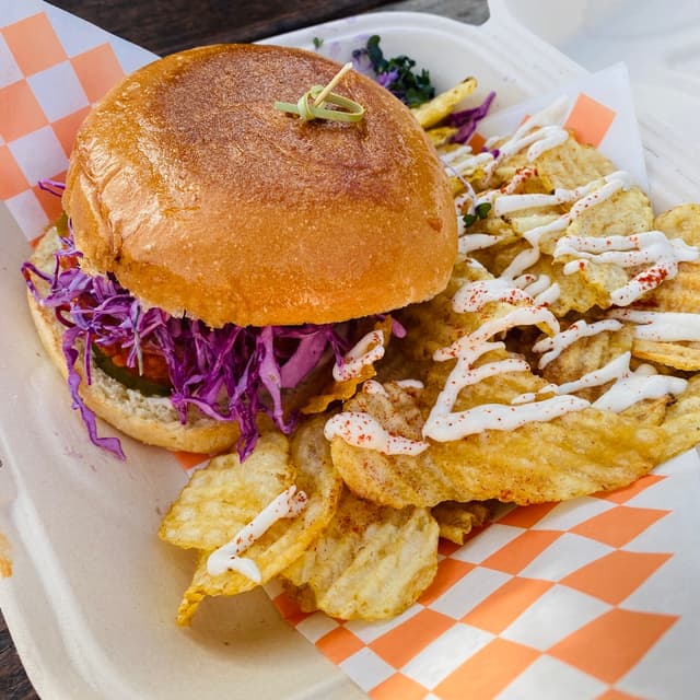 I feel like I’m doing life right when I end up at this cart. This salad is perfect for a 90 degree day. Krab cake (jackfruit + red lentils) on a bed of lettuce + tomato, cajun remoulade, dulse flakes, green onion, paprika and lemon wedge (gf)