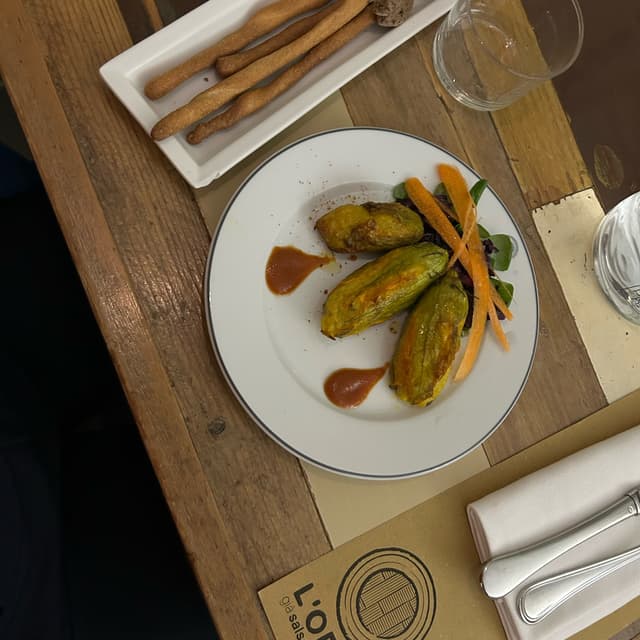 tinavegl1,408 reviewsBuonissimo antipasto primaverile e godurioso, anche se fritto quindi non molto leggero. Consigliato!fiori di zucca ripieni di tofu affumicato