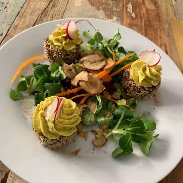 tinavegl1,408 reviewsSquisito piatto crudista dai sapori freschi, leggeri e delicati, ricco di sapore e consistenze diverse. Interessante anche l’uso dei germogli. ApprovatissimoL’evoluzione