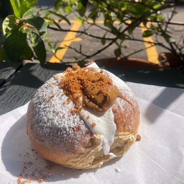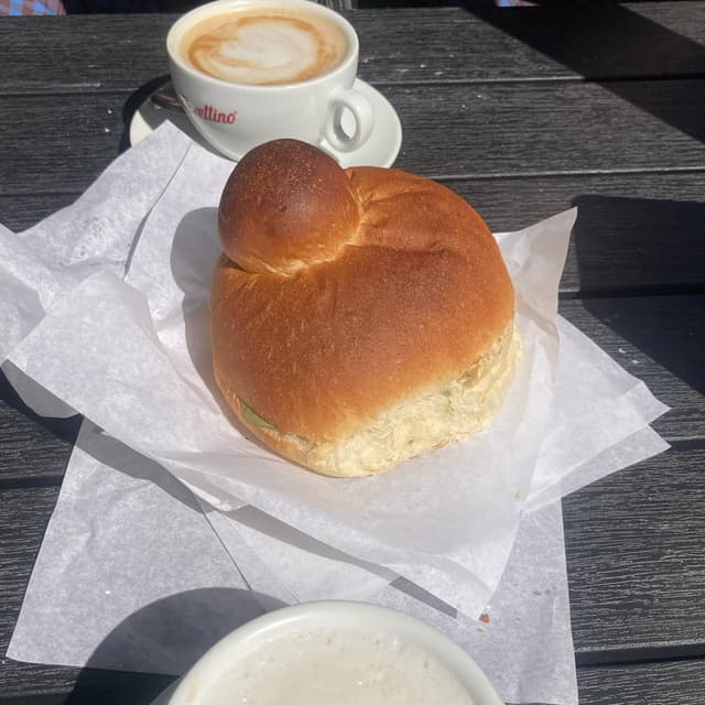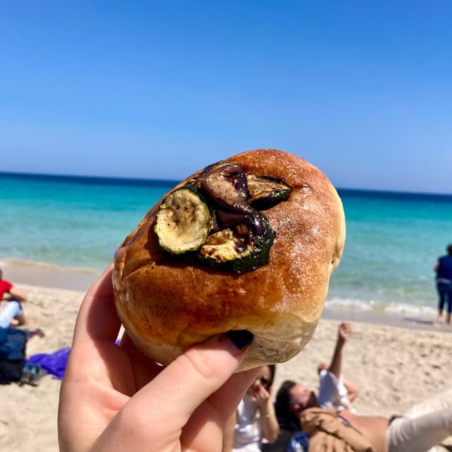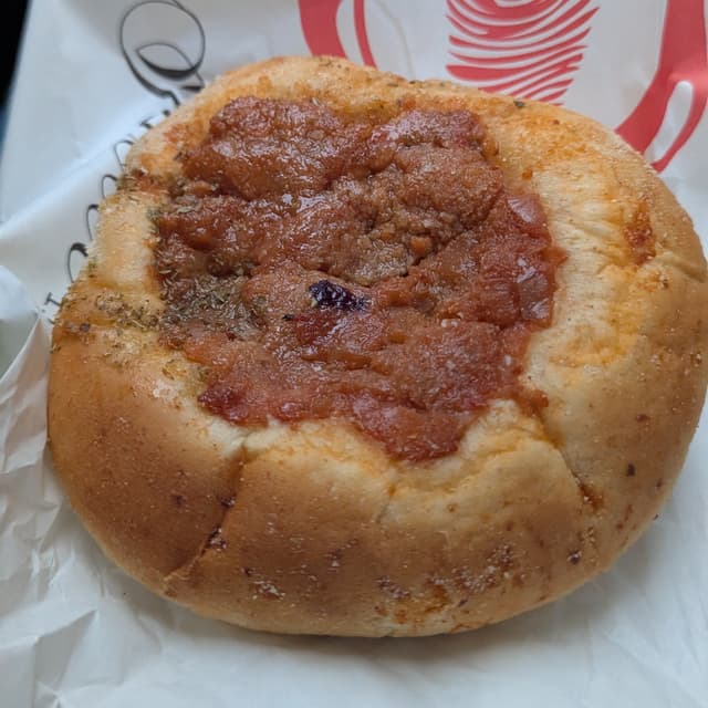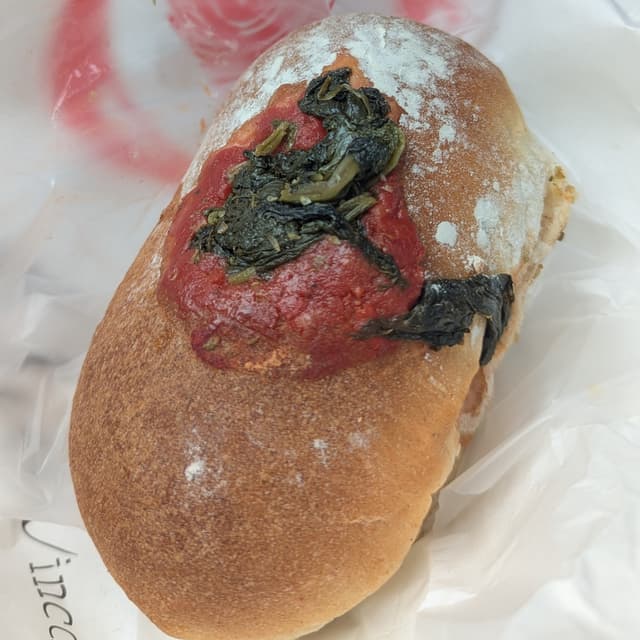 Pizzetta fritta, impasto squisitissimo e sofficissimo. Condimento molto originale, mescola vari sapori: quel pezzo sopra è una specie di tonno veg, finocchietto, besciamella e non ricordo che altro. Mi è piaciuto ma fino a un certo punto perchè ci sono abbinamenti un po' particolari, ma adoro che trovo sempre pizzette nuove che sperimento sempre con piacere. Da provare tutto quello che preparano, perchè c'è tanta varietà di rosticceria e dolcetti.