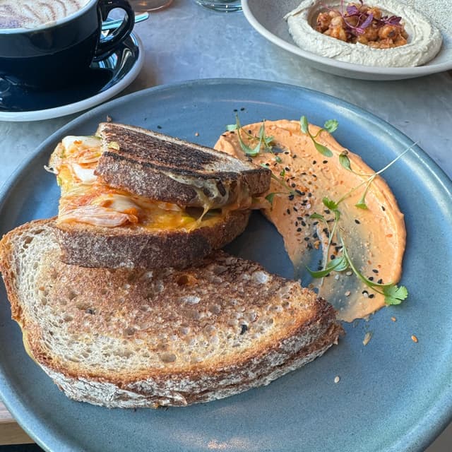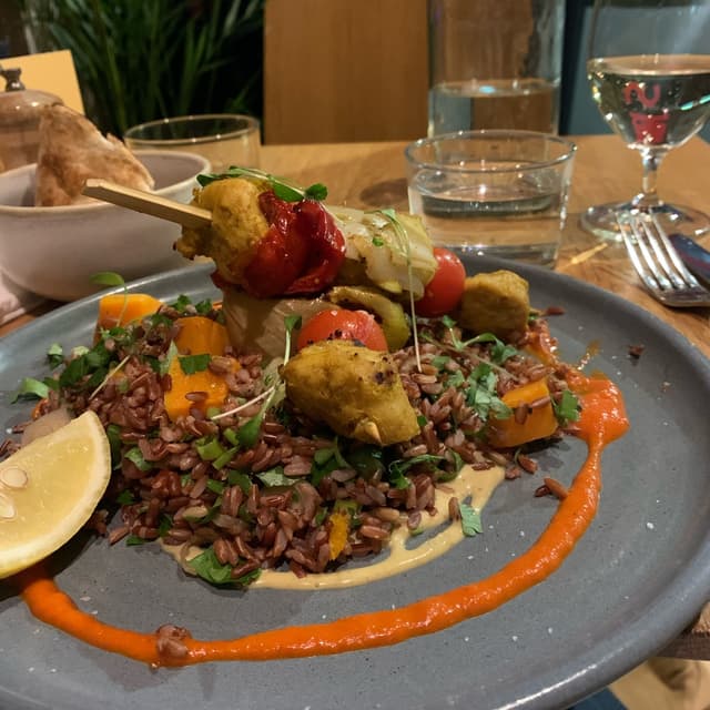 A friend introduced me to Mildred's on 22/3/25 following a Factory Farming is Wicked protest in front of the houses of Parliament. How dish reads on menu: Midly spiced crunchy beetroot and potato patty. Carrot and lime slaw, laccha pyaaz, szechuan ketchup, cucumber coriander salad and red peanut chutney. Served with salt and pepper chips. Cooked and presented beautifully. This dish feels healthy and delicious. I also had a ginger and lemongrass cold brew tea infusion. 💚 My friend had caesar salad, lemon chips and tiramasu. Mildred's are dog friendly. Kindly gave a bowl of water and had some available. Every bite emits different spice tastes. Beautifully presented and my first experience won't be my last. Thank you. 🙏🏻