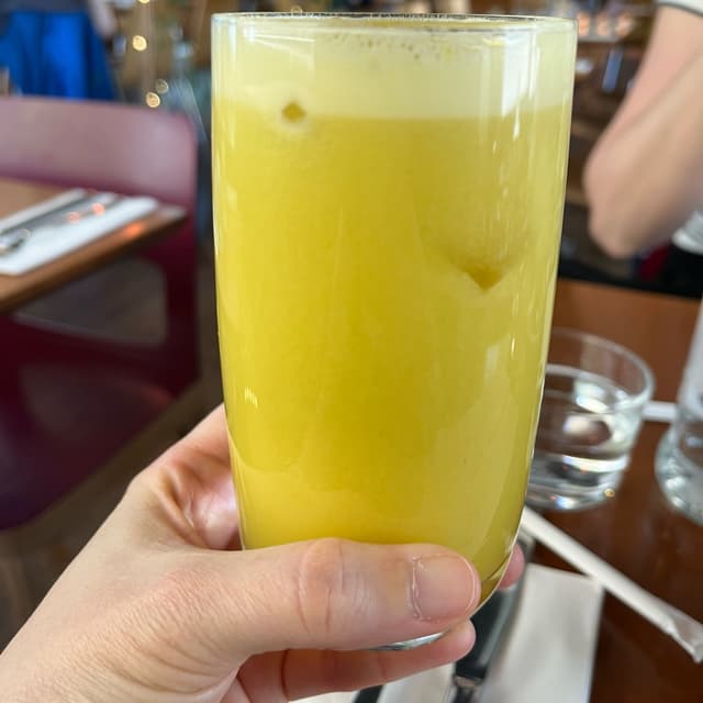 🍍This #juice was yummy and full of all good things for you: #pineapple #ginger #turmeric and #apple. 🫚🍎 My omnivore friend got this at this #veganrestaurant. It’s a bit pricey at £6.50 but so is everything in #veganlondon these days.