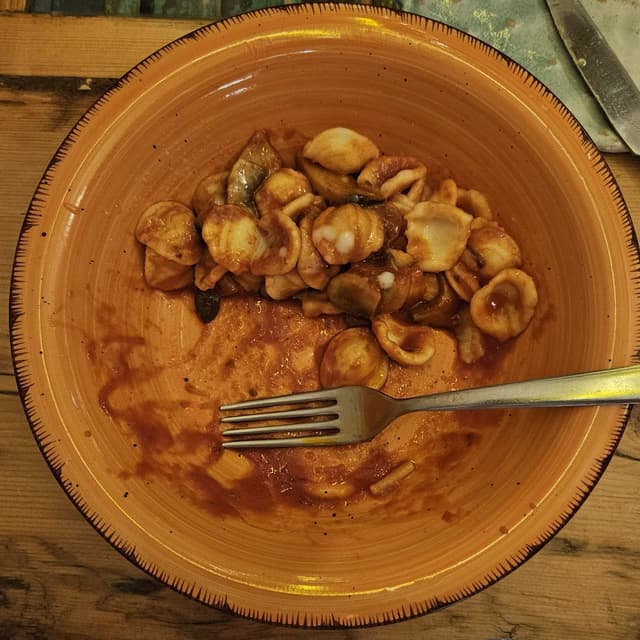 sara12342,390 reviewsBuonissimo (come si vede ho ricordato di fotografarlo dopo averne mangiato metà)orecchiette con funghi e feta