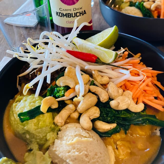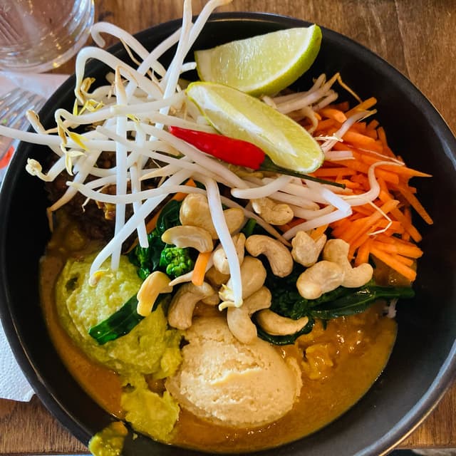 I can’t believe I’ve still got dishes to review a week after we came back from our holiday in Austria and Slovenia! We had so many incredible meals! This one was in Salzburg. We were on our way to a vegan cafe to have lunch before leaving to come back home to Italy. We still had quite a long way to go and were tired after spending the morning up and down the hill visiting the fortress. So on the way to another place we saw this place and decided to give it a try considering it offers vegan options. It was the right decision! We both ordered the vegan gado gado bowl that came with rice, edamame, #hummus, #guacamole, beluga lentils, sprouts, cashews, shredded carrots and wild broccoli, served in a warm peanut sauce. Very comforting, filling and healthy. And fast! Exactly what we needed ☺️ #veganisnotscary #veganbowl #veganfortheanimals #goveganfortheanimals #cashew