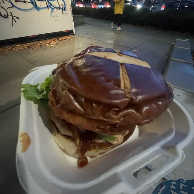 Osh Morethstorm838 reviewsThis ish was delish and I coulda ate 11 more probably butchyea it’s really vegan egg all the way sunny side splat yellow 🎨 paint! 🤤 yum.😋 $15 about and free with coupon. I bought an other burger, maverick cluckwich and a small coffee shake 🫨 so good fasho!!! Viva la vegan, baby. That’s fasho. Viva La 🥑 🌱 🥗 Vegan 🥑 🌱sunrise burger