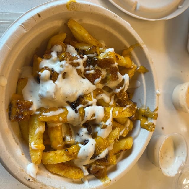 Osh Morethstorm838 reviewsPerfectly seasoned and golden crisp on the outside while warm and fluffy on the inside. Covered in ghost pepper ranch and blue cheese over an American melted cheese top. I think it’s American.special style fries