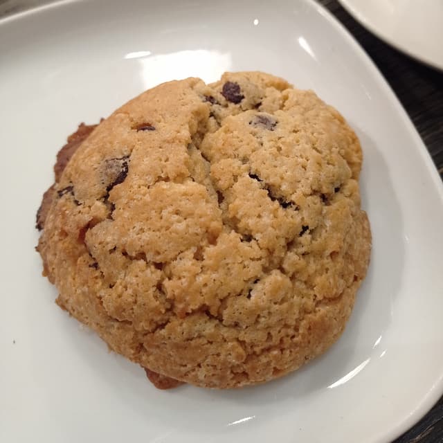 Cookie con pepitas de chocolate. Tiene un tamaño grande y es tierna por el centro sin ser blandurria. La sirven con un golpe de calor que hace que el chocolate este parcialmente derretido