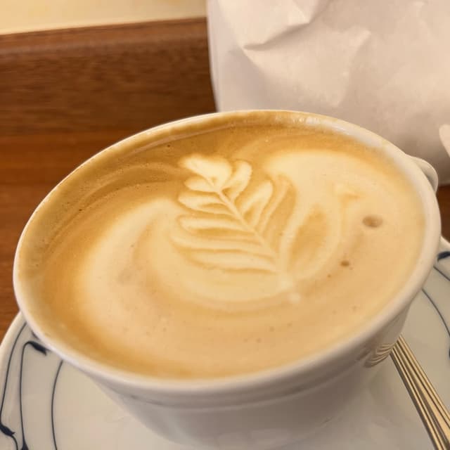 Ad accompagnare la sfogliatina di riso, un buon cappuccino con latte di soia, buon sapore, ben fatto, cremoso, presentato con un disegno che è sempre piacevole da ricevere e vedere 🤩